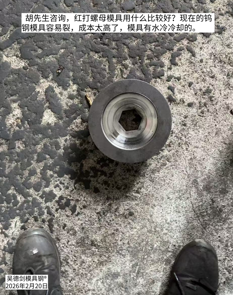 Just received a consultation from Mr. Hu, what is the best die steel for the red nut mold? The current tungsten steel molds are prone to cracking and the cost is too high. The molds have water-cooled cooling.