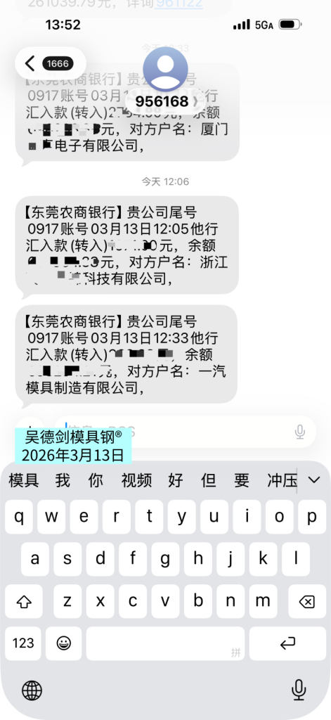 Good news two, the payment from China FAW Mold Manufacturing Co., Ltd. has been received, and he has purchased 8503 die steel that is non stick material.