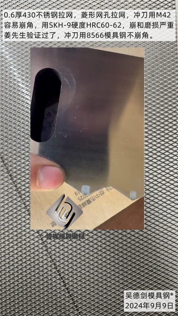 He is meaningful because he gave me some good news. His stainless steel diamond mesh punching knife, made of ordinary die steel, can only make 10 rolls of material and has a lifespan of about 100 meters. However, 8566 anti collapse steel can make 200 meters, which is twice as long as before.