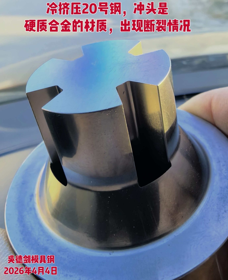 I just got off the plane today and received a consultation from Mr. Zhao about the fracture of the punch made of hard alloy during cold extrusion of No. 20 steel. May I ask if there is any tool steel with higher hardness and better toughness than tungsten steel.