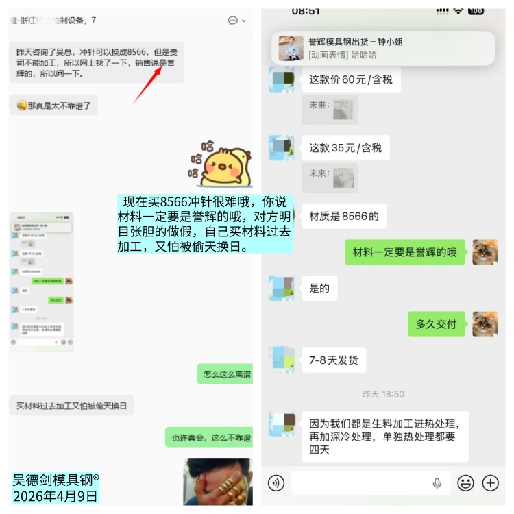 The current 8566 is already the “four copied” tool steel that peers across the internet are copying, not only the four copied 8566, but also the shadow 8566; It is also a reference standard for large steel, which is an unprecedented industry phenomenon.